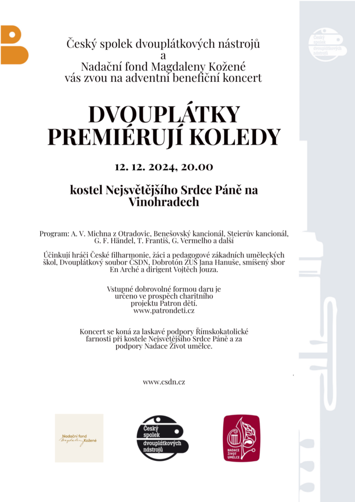 Vstupné dobrovolné formou daru je určeno ve prospěch charitního projektu Patron dětí. www.patrondeti.cz